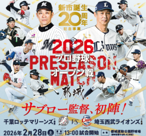 都城市 新市誕生20周年記念事業 プロ野球オープン戦 2026 都城市の新市誕生20周年を記念し、プロ野球オープン戦を実施します。 都城市でのプロ野球オープン戦の開催は14年ぶりとなります。 千葉ロッテマリーンズ新体制、 […]