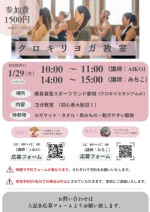 『週イチ』フィットネスの講師お二人が、 ヨガ教室を ”新たに開催” します! #霧島酒造スポーツランド都城 内容 ヨガ教室 対象 対象制限なし 参加費 1500円(税込)※1回 […]